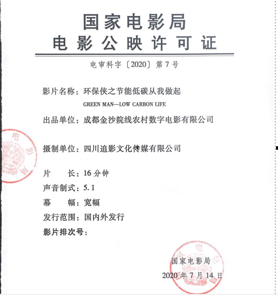 金沙院線投資拍攝的首部科教電影取得電影公映許可證